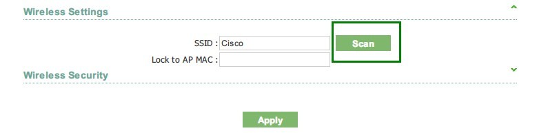 1. After login the web interface, go to Wireless page, press scan